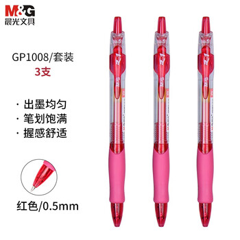 晨光(M&G)按动中性笔gp1008黑色签字笔按压式商务办公水笔考试刷题走珠笔0.5mm笔芯 3支红笔