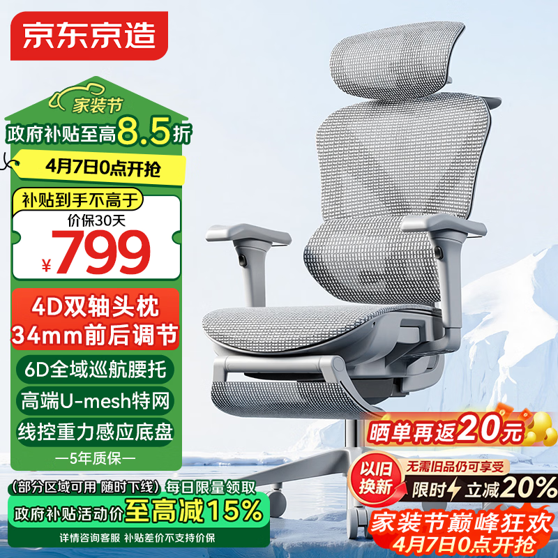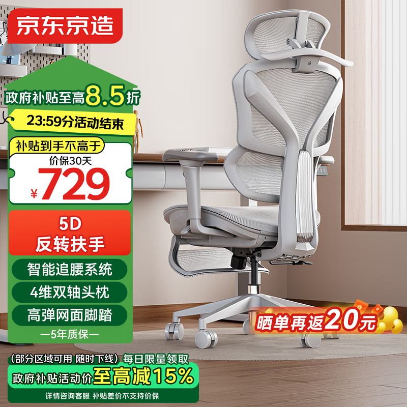 自营京东京造Z9Pro人体工学椅电竞椅办公椅子电脑椅人工力学座椅5D扶手+脚踏灰