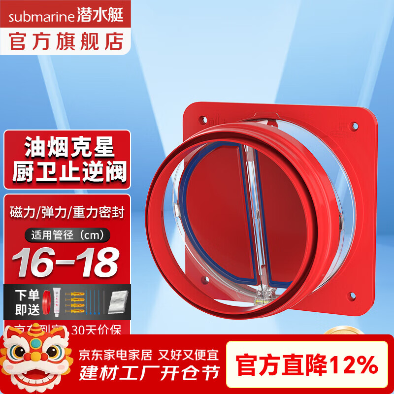 旗舰店潜水艇(Submarine)公共烟道止逆阀烟道阀抽油烟机止回阀套餐厨房卫生间排风扇止烟阀 新升级厨房止逆阀(透明视窗)