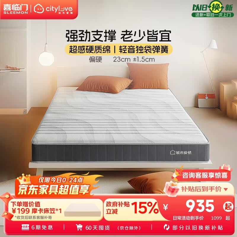 自营城市爱情喜临门床垫舒脊硬质绵轻音独袋弹簧床垫子 大白H 1.5x2米 偏硬