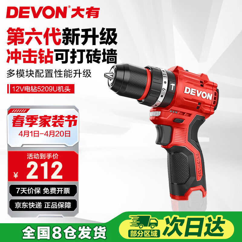 自营大有(Devon)12V无刷锂电手电钻 50牛米电动家用带冲击手钻螺丝刀起子机 5209U