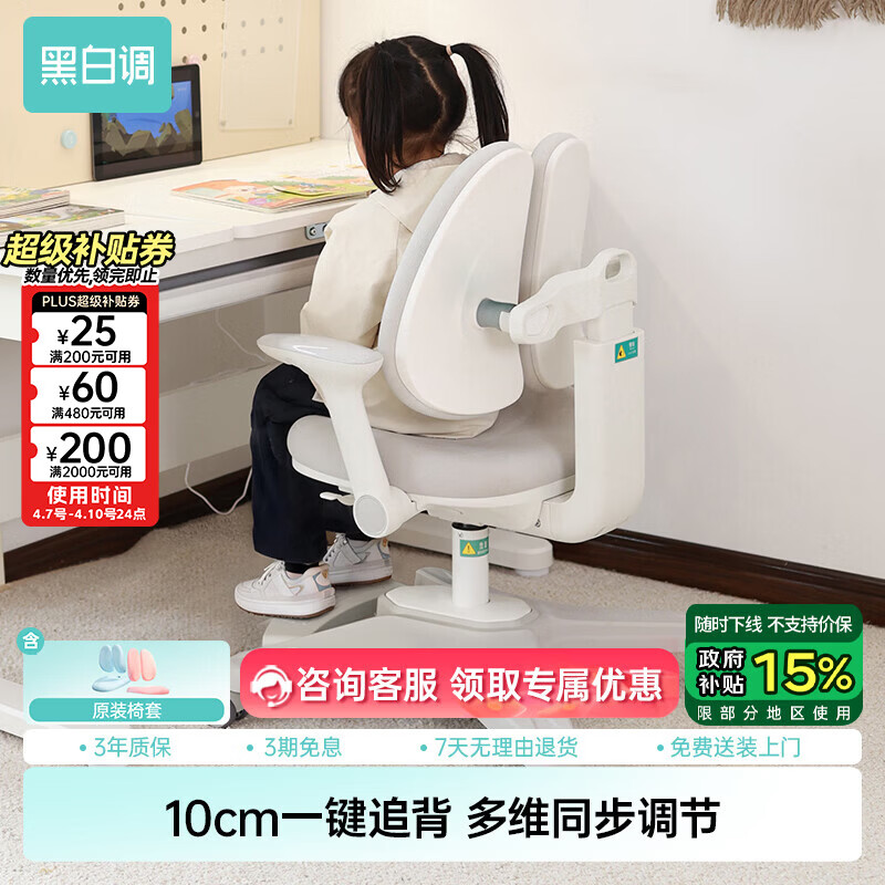 自营黑白调G3Pro儿童学习椅追背升降写字椅学生椅子带脚踏【10cm一键追背】