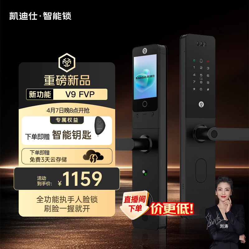 自营凯迪仕(KAADAS)智能门锁3D人脸识别可视猫眼大屏 入户门电子密码 智能锁 V9 FVP