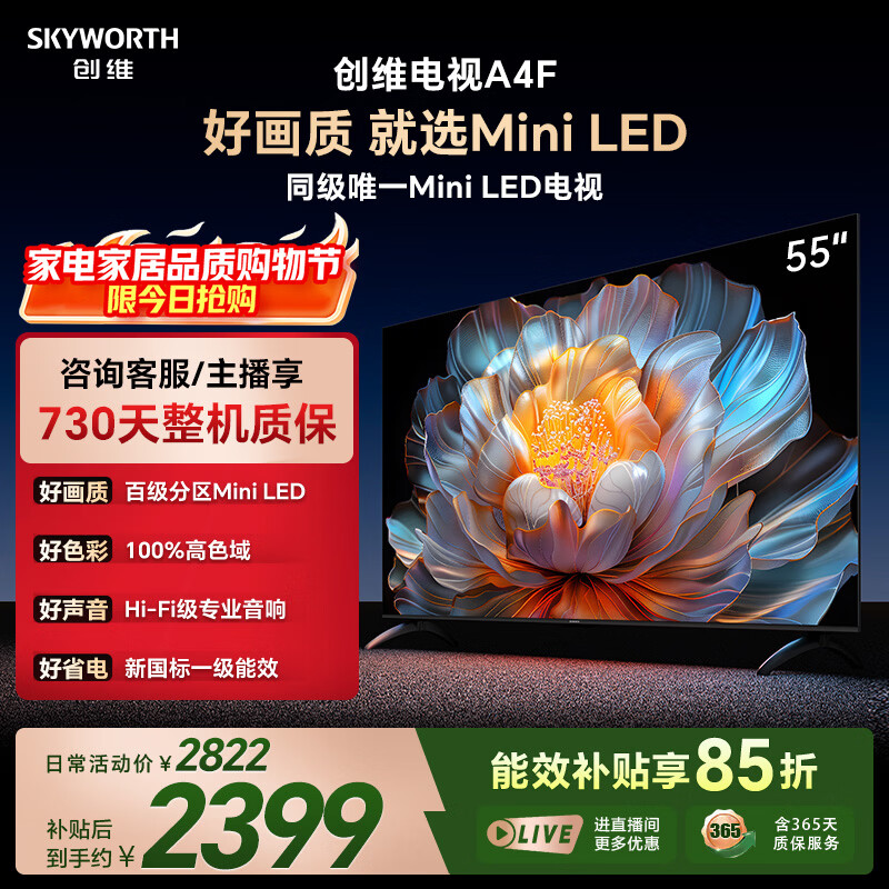 自营创维电视A4F 55英寸 百级分区Mini LED 144Hz高刷 HI-FI音响 一级能效 国家补贴