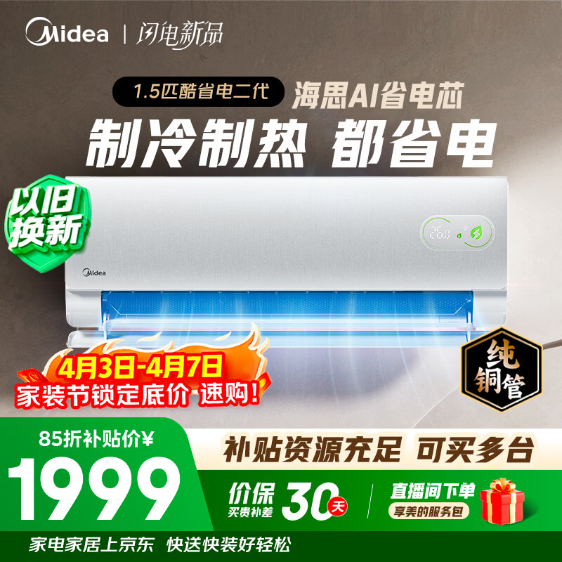 自营美的空调 酷省电二代 大1.5匹新一级能效变频冷暖 纯铜管 卧室空调挂机KFR-35GW/KS2