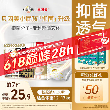 自营贝因美小屁孩Pro拉拉裤XL30片(12-17kg)加大号婴儿尿不湿夏季超薄透气