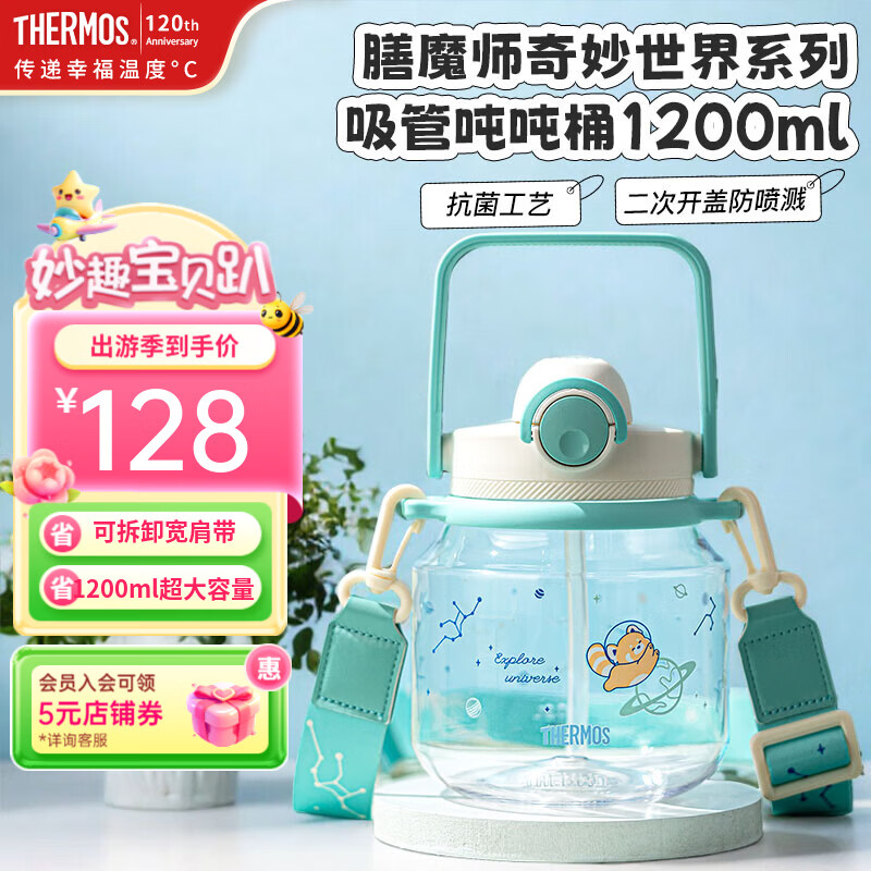 旗舰店膳魔师吨吨桶大容量大肚杯儿童水杯大肚吸管杯直饮杯户外喝水杯子冷水壶 奇妙世界系列1200ml绿色