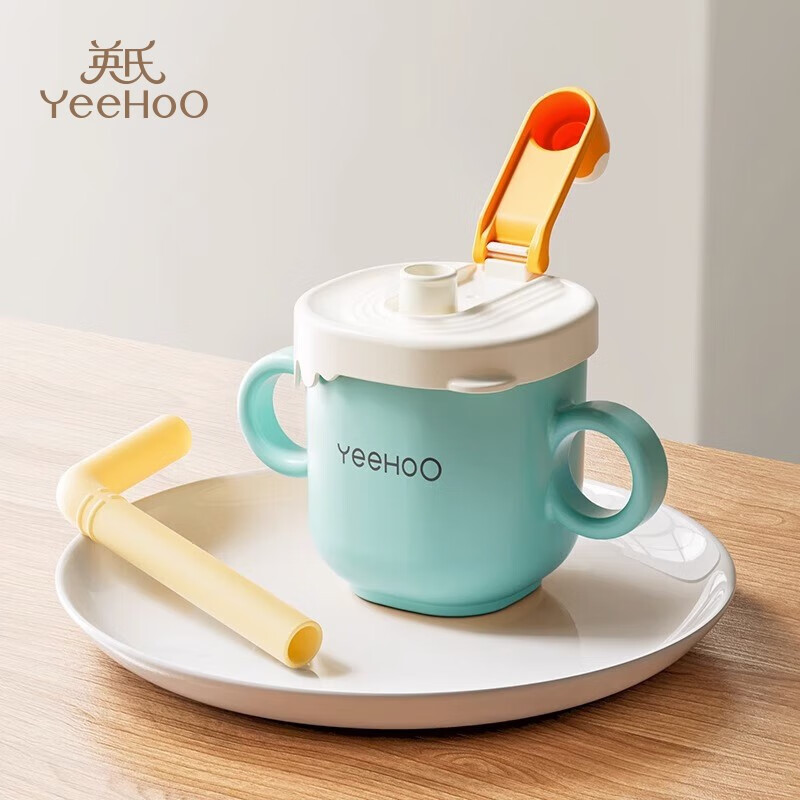 旗舰店英氏(YEEHOO)牛奶杯儿童水杯316不锈钢喝水学饮杯奶瓶宝宝水杯吸管杯1岁 蓝色