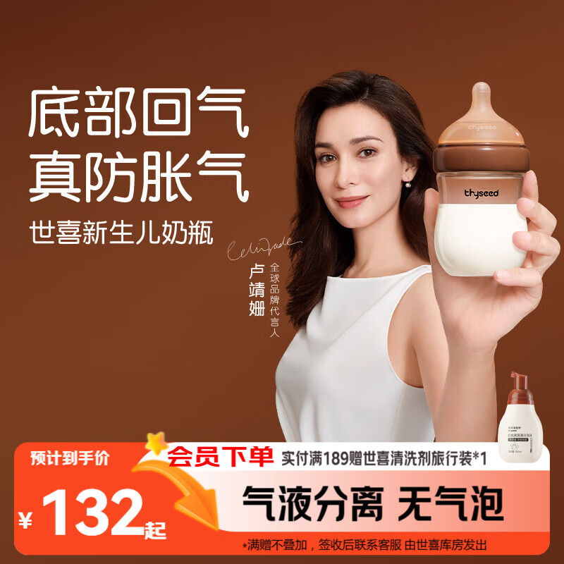自营世喜奶瓶新生儿1-2个月防胀气玻璃婴儿仿母乳奶嘴160mlAB款随机发