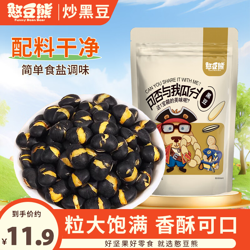 自营憨豆熊炒黑豆500g袋装盐炒坚果熟即食香酥黑豆孕妇高蛋白零食五谷杂粮