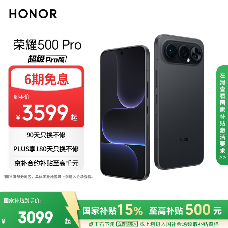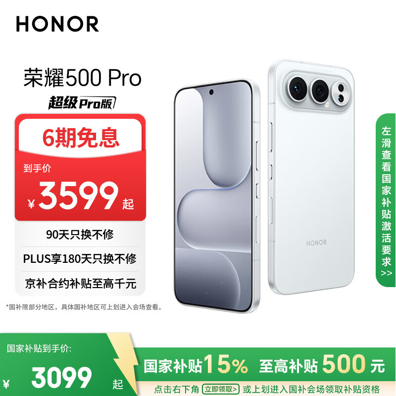 百亿补贴【政府补贴】HONOR/荣耀500 新品手机 2亿人像全能实况 8000mAh青海湖电池 第四代骁龙8s 拍照