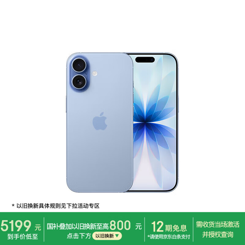 自营Apple/苹果【需现场激活】 iPhone 17 256GB 青雾蓝色 支持移动联通电信5G 双卡双待【返移动话费券】