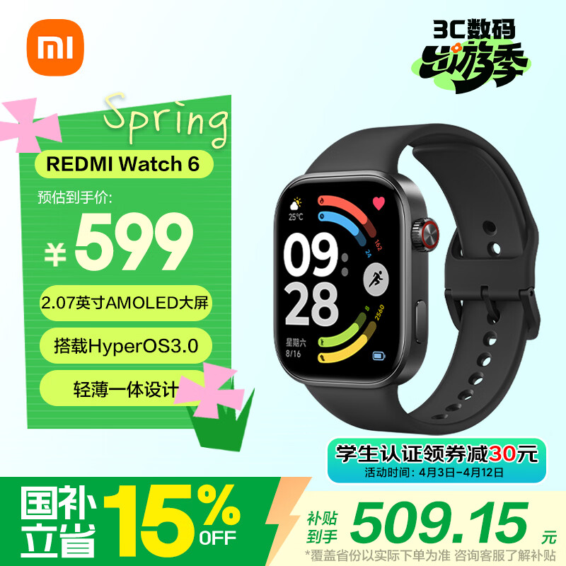 自营小米(MI)REDMI Watch 6典雅黑 国家补贴 澎湃OS 3 心率血氧监测 红米手表6 小米汽车 送男友送女友