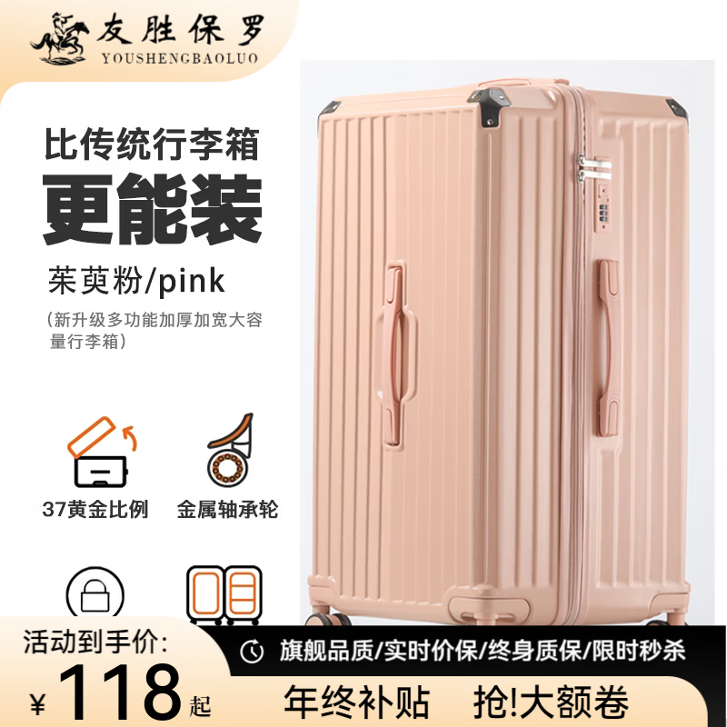 旗舰店友胜保罗大容量行李箱多功能高颜值拉杆箱男密码箱大号旅行皮箱登机箱可坐 茱萸粉【充电+杯架+手机支架】 20英寸 【五五分登机箱】