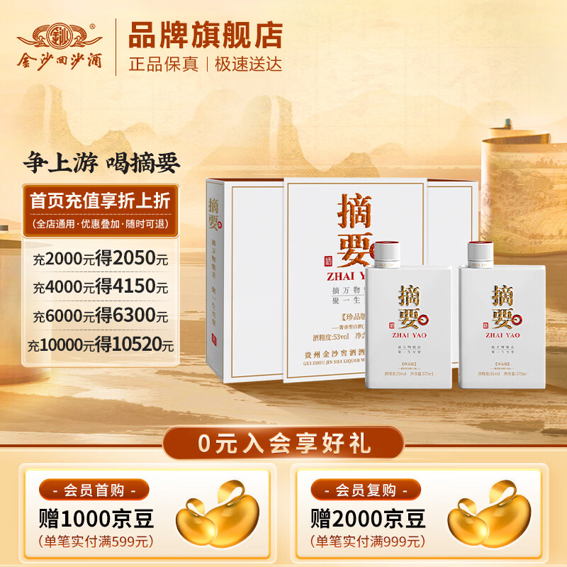 旗舰店摘要 珍品版 53度酱香型白酒礼盒 贵州金沙回沙纯粮坤沙 商务宴请送礼 53%vol 375mL 2瓶 (礼盒装)