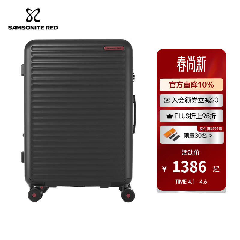 旗舰店新秀丽(Samsonite)拉杆箱大容量行李箱男女旅行箱 万向轮登机箱时尚抗压 密码箱 HG0 HG0-黑墨色 20英寸 【适合1周内短途旅行】