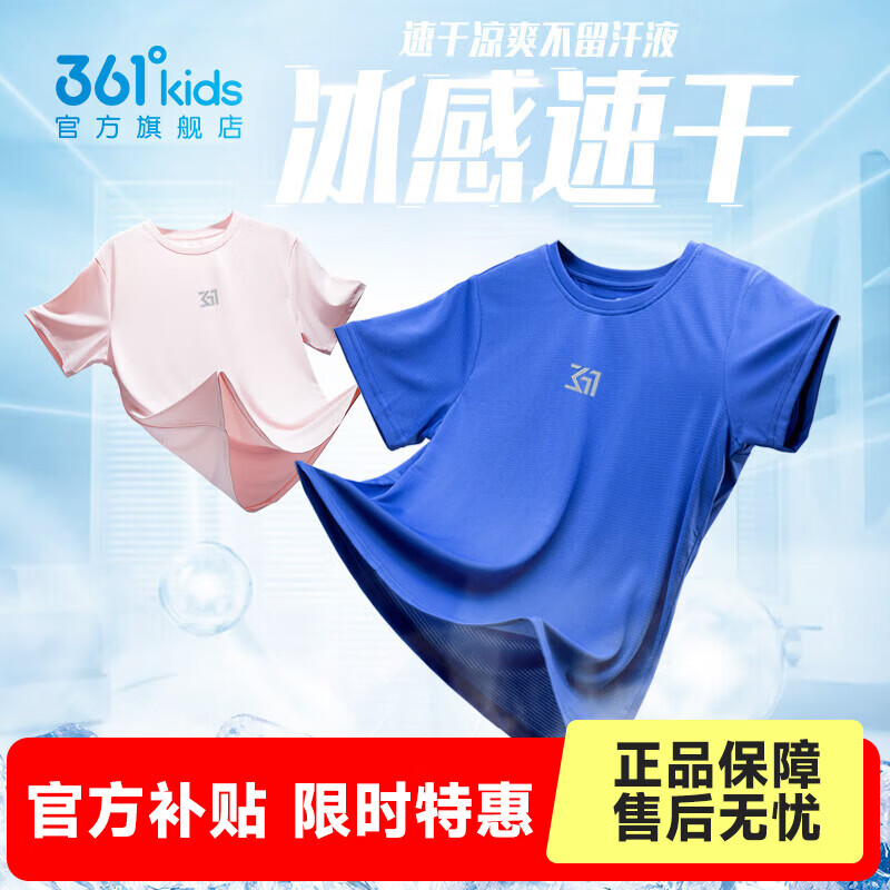 旗舰店361°童装男女童短袖针织衫夏季新款速干透气儿童T恤中大童冰爽t恤 波仕蓝1204 101cm【小童】