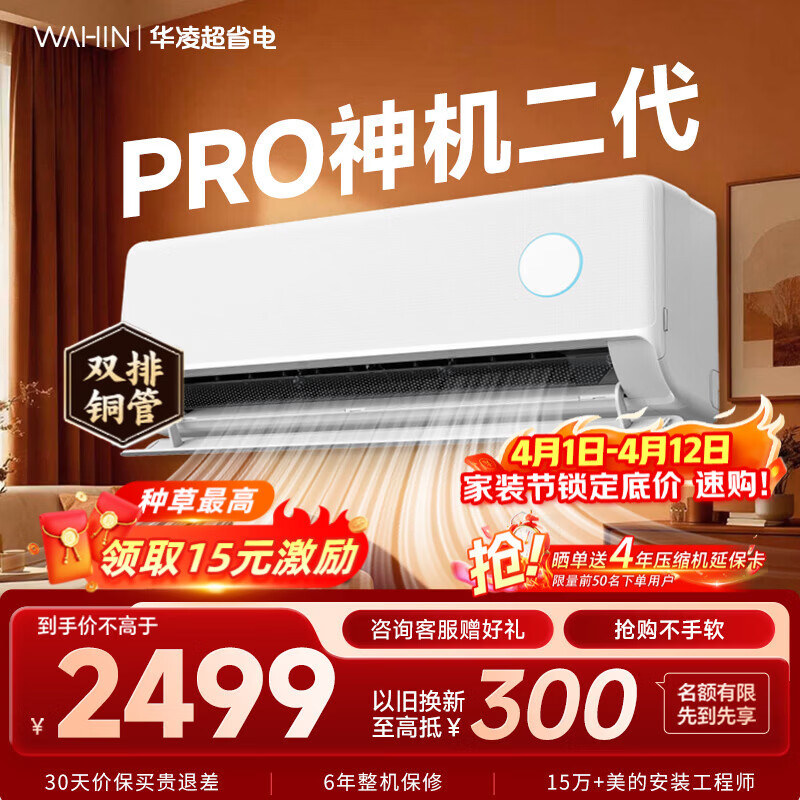 旗舰店华凌空调挂机家用家电补贴空调 神机 大1.5匹 超一级能效 变频省电 以旧换新【双排铜管】 大1.5匹一级能效【神机二代】Pro升级高配款