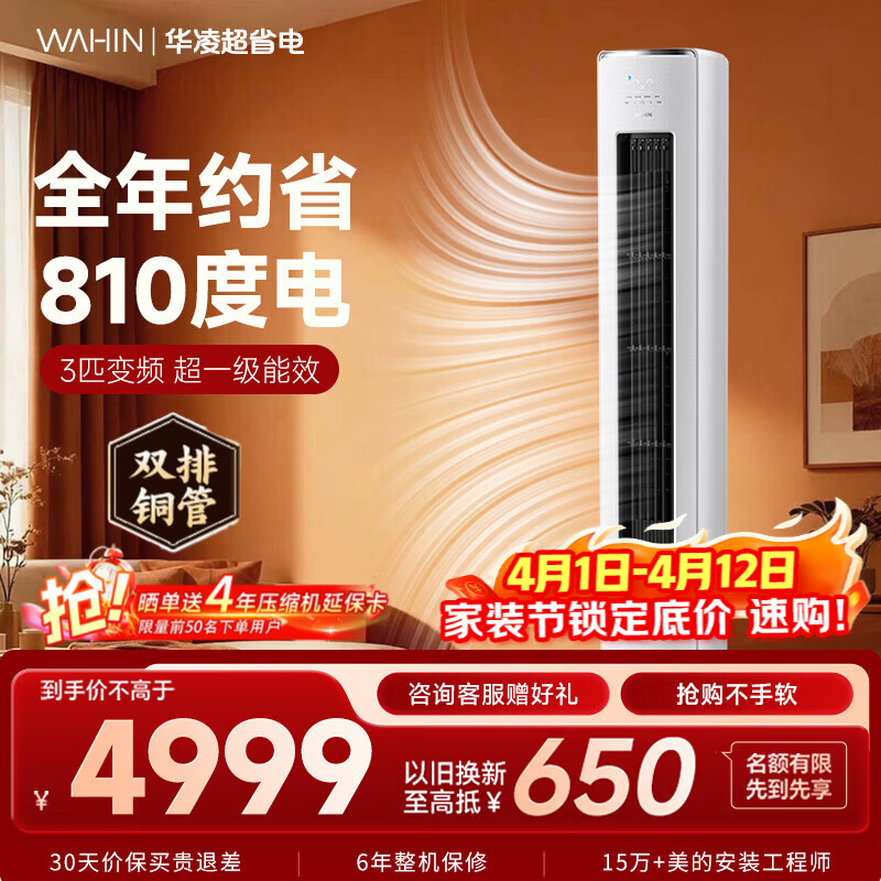 旗舰店华凌空调智能柜机 家电补贴空调 3匹/2匹 新一级能效 变频省电 立式 以旧换新 3匹一级能效【神机二代】72HE1Ⅱ【双排铜管】