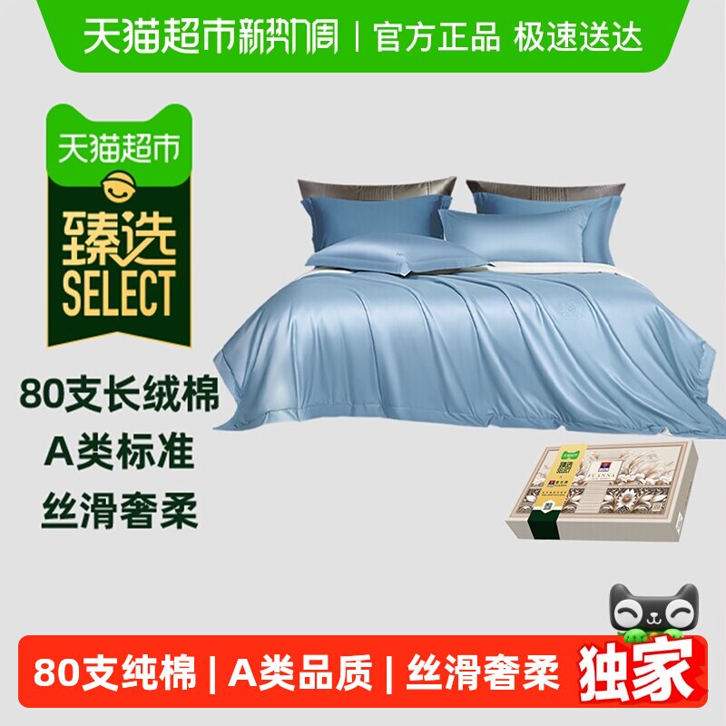 臻选富安娜家纺80支长绒棉四件套轻奢高端套件全棉床单被套