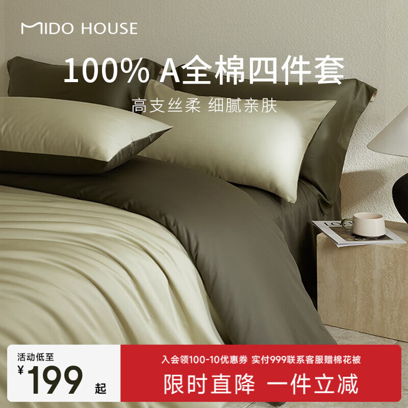 旗舰店MIDO HOUSE【限购一件】铭都60支床上四件套100%纯棉A类床单床品三/四件套 【60支100%全棉】春水绿配橄榄绿 1.5m 床单款 (被套200*230cm)