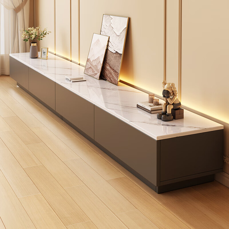 旗舰店米客米家电视柜落地2025客厅家用小户型靠墙储物柜一体新款茶几电视柜组合 【推荐款1.8米】灰色+白大理石纹 组装(自行组装)