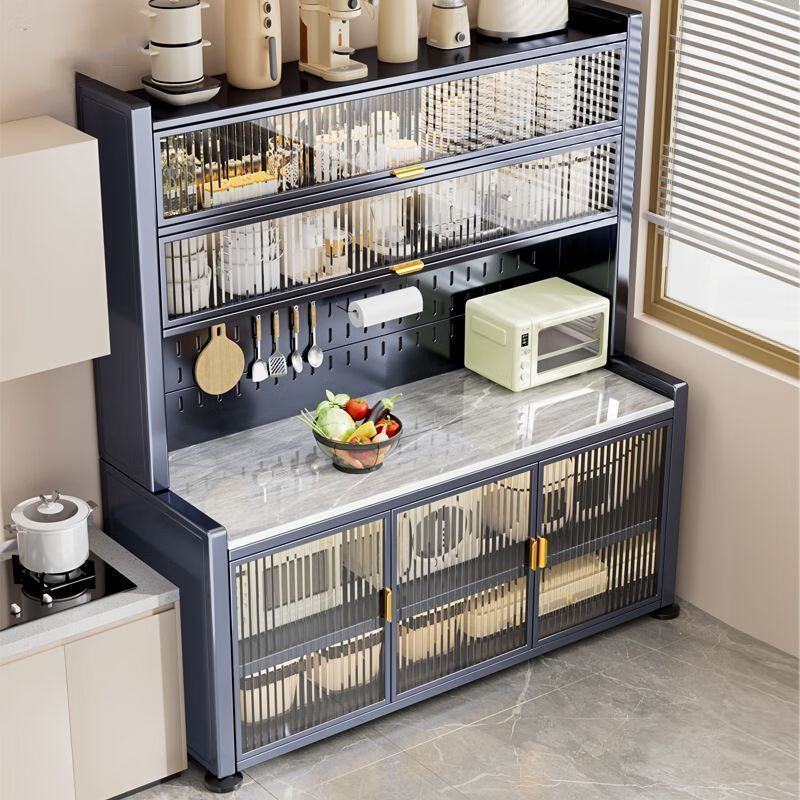 旗舰店卡诗曼国家厨房岩板餐边柜一体靠墙收纳碗柜橱柜不锈钢落地置物架子补贴 灰5层【长40深32高157cm】 (自行安装)强烈建议