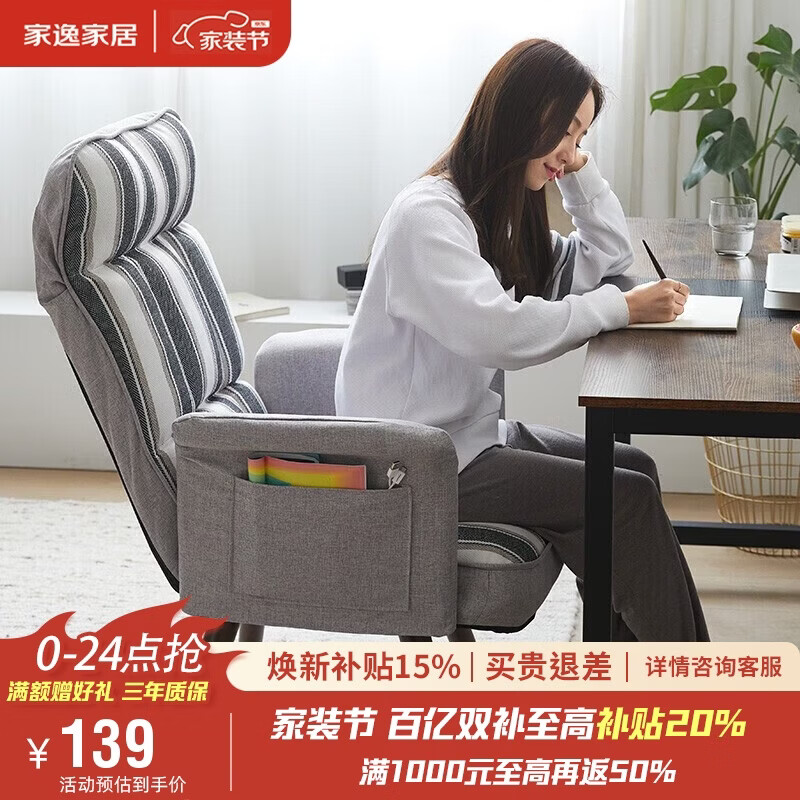 自营家逸实木电脑椅家用沙发椅可调节人体工学椅办公椅可躺单人沙发