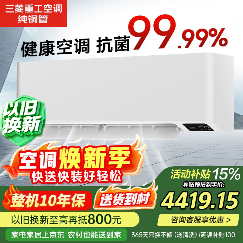 自营三菱(MITSUBISHI)空调 1.5匹一级能效变频冷暖除菌省电静音纯铜管三菱重工空调挂机KFR-35GW/AHV1国家补贴大风量