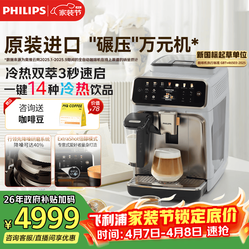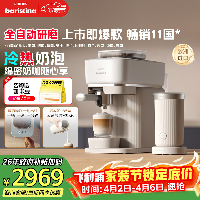 自营飞利浦(PHILIPS)Baristina新型意式美式咖啡机 全自动家用/办公室研磨一体咖啡机 BAR系列奶咖版 送礼物