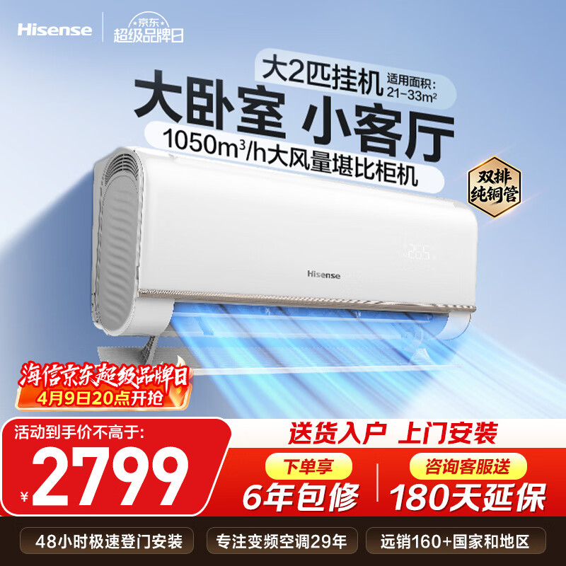 自营海信空调 大2匹 易省电E370 AI省电 速冷热 仿真自然风 新一级能效 空调挂机 KFR-50GW/E370-X1