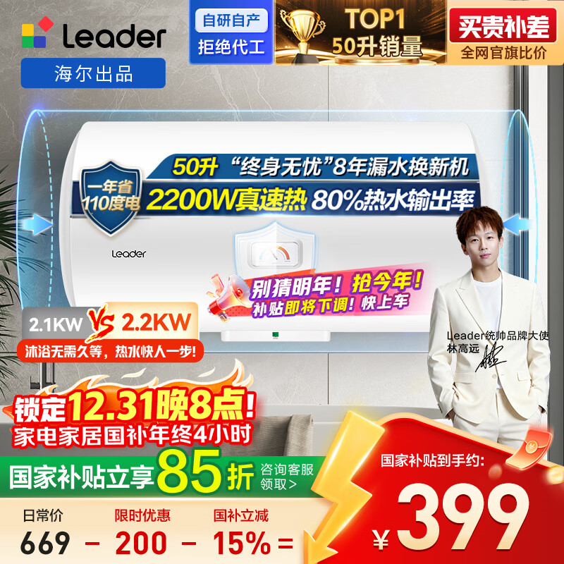 自营海尔出品统帅 50升电热水器京东自营上门安装 国家补贴 2200W节能速热家用安全浴储水式LEC5001-20X1