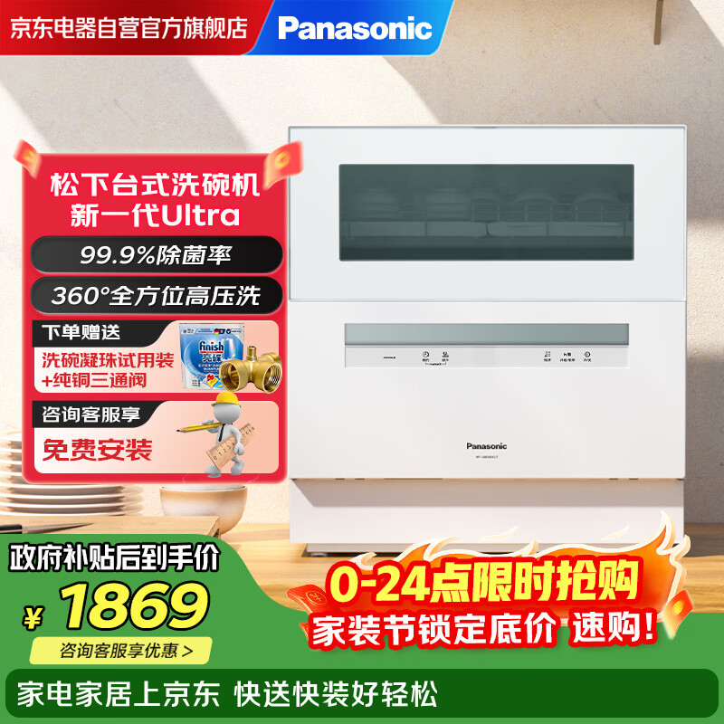 自营松下(Panasonic)台式洗碗机新一代Ultra家用台面上5套大容量 99.9%除菌率可视化纤薄小型机身门店同款NP-UW5WK2T