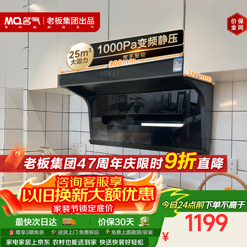 自营名气(MQ)【老板出品小黑翼Pro A5508】顶侧双吸25风量大吸力 家用上门安装 以旧换新抽吸油烟机【可搭灶】