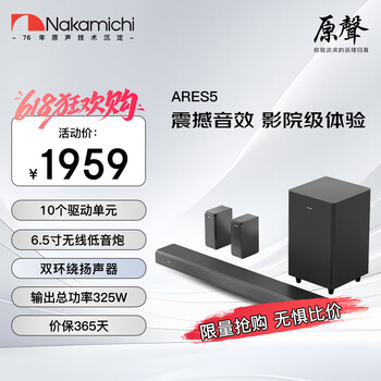NAKAMICHI中道回音壁物理5.1.2杜比全景声回音壁双环绕蓝牙投影家庭影院电视投影机游戏回音壁套装 Ares5