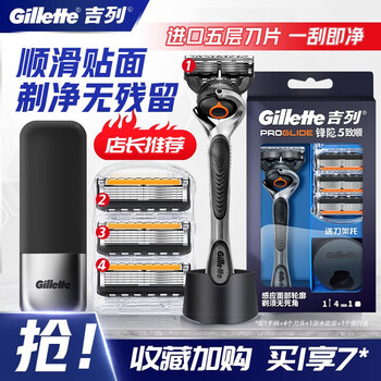 吉列进口锋隐致顺手动剃须刀锋速5层刀片刀头男士引力盒刮胡刀 4刀头1刀架底座+旅行收纳盒