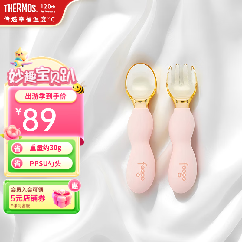旗舰店膳魔师儿童餐具叉勺316L不锈钢叉子勺子套装宝宝辅食工具带收纳盒 TCAH 泡泡粉-PPSU叉勺套组(含收纳盒)