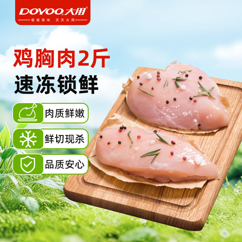 自营大用单冻鸡大胸 2斤 冷冻生鲜 健身代餐鸡胸肉清真 低脂鸡胸肉 减脂餐