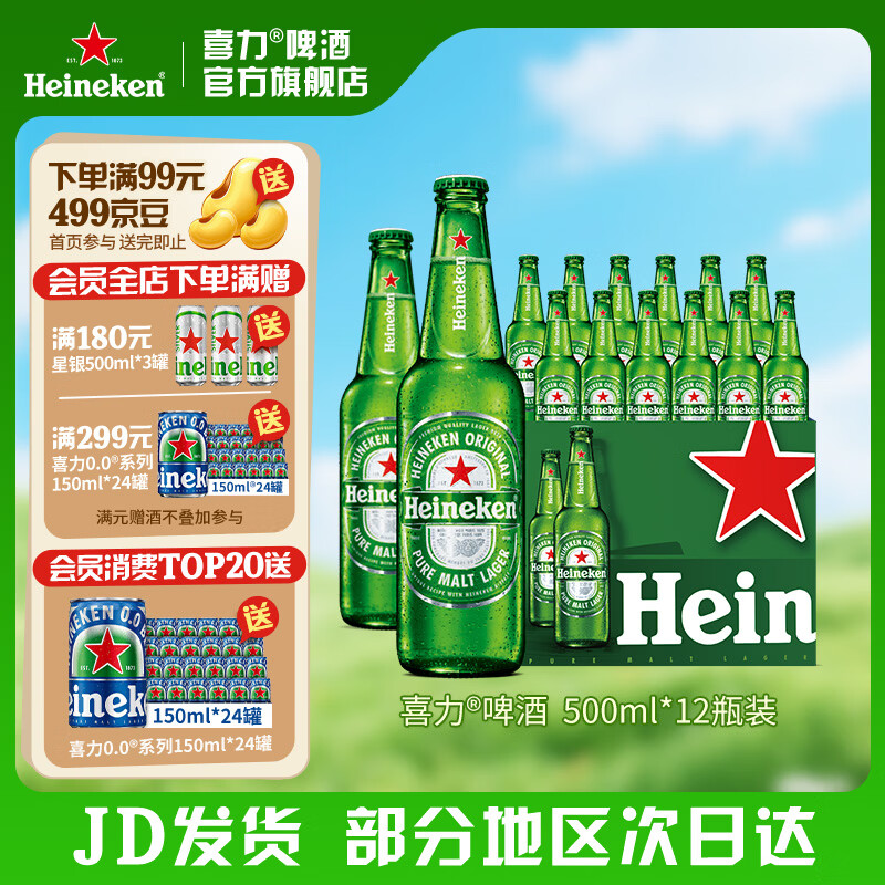 旗舰店喜力啤酒 经典啤酒 整箱装 全麦酿造 官方正品 500mL 12瓶