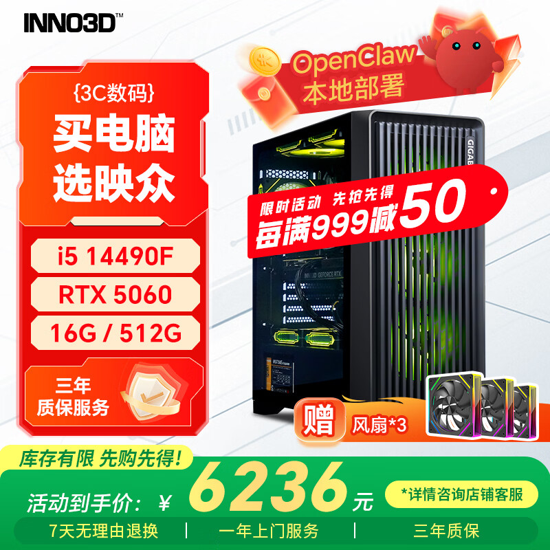 自营映众(Inno3D)曜夜456 I5 14490F/RTX5060/16G/512G固态台式电脑游戏台式机电脑主机全套整机