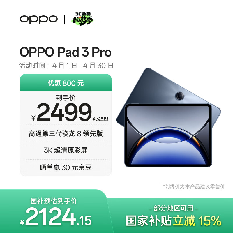 自营OPPO Pad 3 Pro 12.1英寸平板电脑 8GB+256GB夜幕蓝 办公游戏学习一加平板京东自营