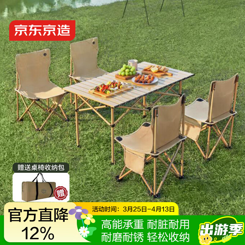 自营京东京造 户外折叠桌椅套装长桌四椅 露营桌椅折叠桌折叠椅子野餐装备全套