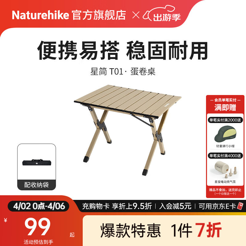 旗舰店Naturehike挪客星简蛋卷桌折叠桌 户外公园露营装备野餐烧烤便携桌子可收纳 卡其色/S