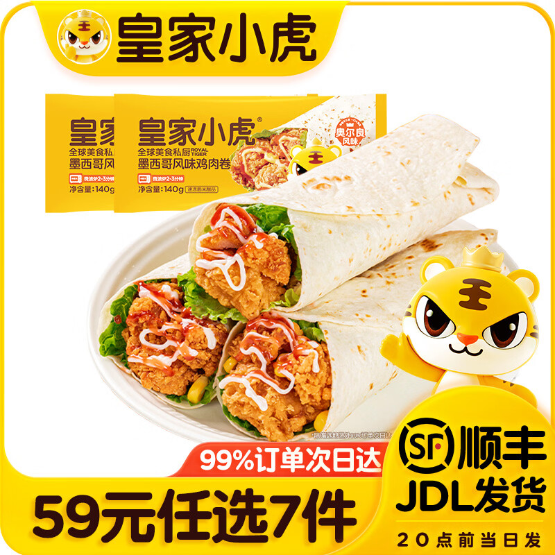 旗舰店皇家小虎【59元任选7件】烤肠烧麦小笼包鸡肉卷馅饼牛肉卷锅盔早餐面点1 墨西哥鸡肉卷奥尔良味140g*2