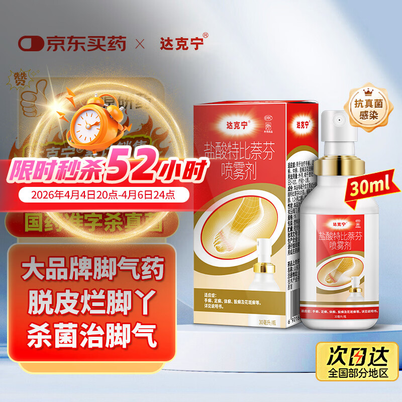 自营达克宁盐酸特比萘芬喷雾剂30ml脚气喷雾剂治脚气药止痒脱皮烂脚丫真菌感染自营脚臭脚气专用药乳膏凝胶毛囊炎