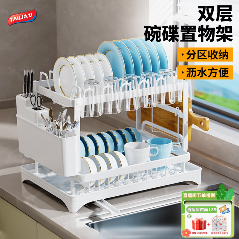 自营太力厨房收纳置物架碗碟架碗架碗筷沥水架台面多功能置物架