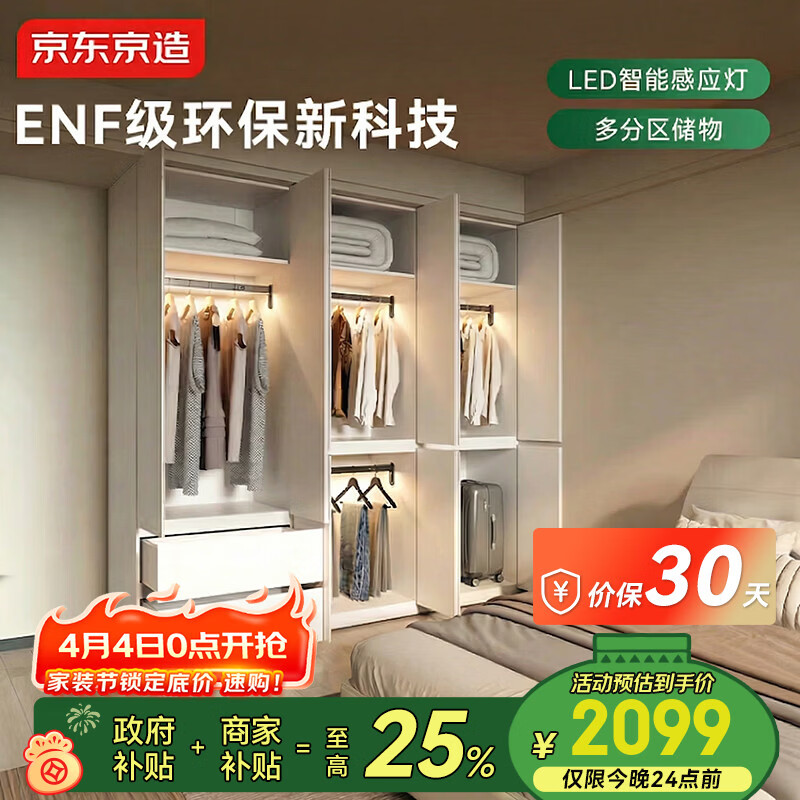 自营京东京造2026新云素衣柜ENF级现代简约卧室环保收纳储物白色开门衣柜五门