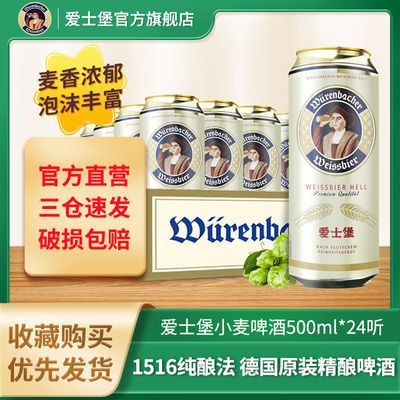 百亿补贴爱士堡小麦啤酒500ml*24德国原装进口精酿白啤罐装整箱瓦伦丁啤酒