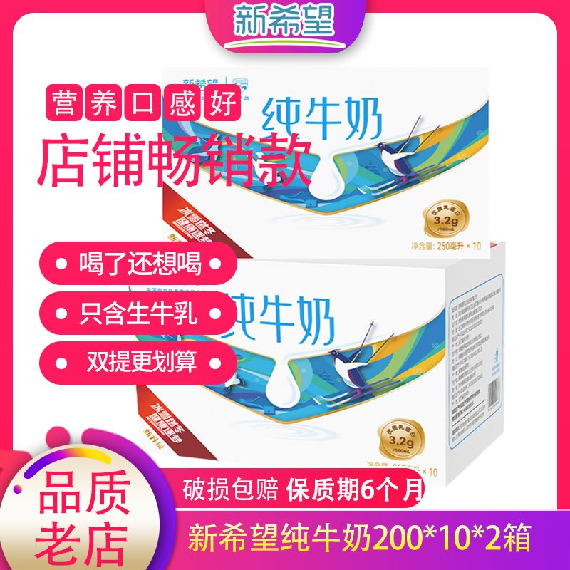 【5人团】新日期新希望纯牛奶250ml*10*2箱家庭装生牛乳营养奶