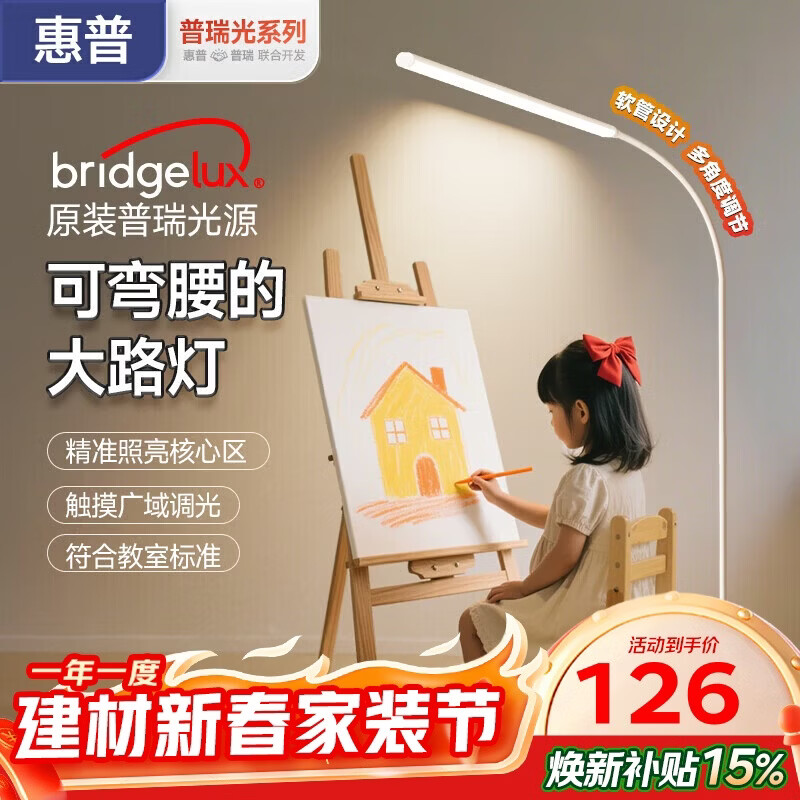 自营惠普落地灯护眼客厅卧室儿童书房学生学习阅读台灯钢琴灯立式 普瑞光